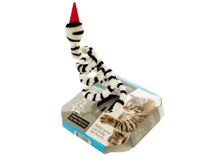 Keep your feline friend entertained for hours with the Interactive Spring Snake Cat Toy. This unique toy features a charming snake made from a resilient metal spring, elegantly covered in soft, striped plush, and securely mounted onto a plush base. The interactive design allows the snake to spring back when cats swat it, enhancing the play experience and keeping their instincts sharp.