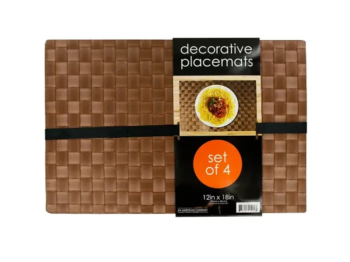Enhance your dining experience with our Elegant Brown Woven Placemat Set. This set of four placemats is designed to bring a stylish touch to any table setting.