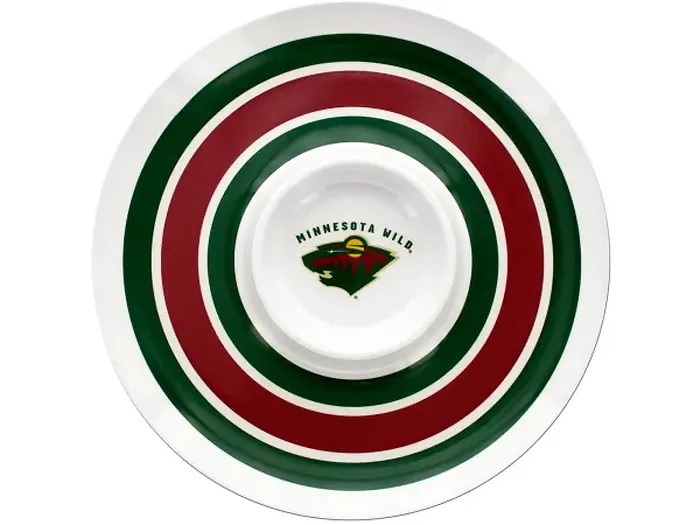 Elevate your game day experience with the Minnesota Wild NHL Chip & Dip Serving Platter. This vibrant platter showcases your team spirit with its round design featuring the iconic Wild logo at the center. Ideal for serving snacks during parties or while enjoying the game at home.