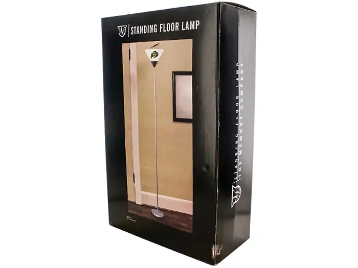 Illuminate your space with pride using the University of Colorado Buffaloes Floor Lamp. This stylish lamp boasts a durable silver metal column and base, topped with a translucent plastic shade showcasing the iconic Buffaloes logo. Perfect for adding a touch of school spirit to any room!