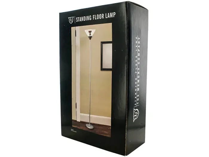 Illuminate your space with pride using this stunning Texas Tech University Red Raiders Floor Lamp. Perfect for any fan, this lamp features a durable silver metal base and column, topped with an eye-catching translucent plastic shade that prominently showcases the Red Raiders logo.