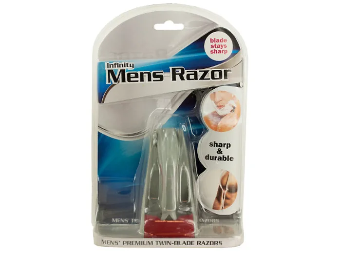 Get a smooth shave and save money with this Men's Infinity Razor, featuring a sharp and durable razor with twin carbon injected steel blades infused with tungsten-carbide that stays "new blade" sharp. Includes: ergonomic razor handle, infinity blade cartridge and stand. Comes packaged in a blister pack.