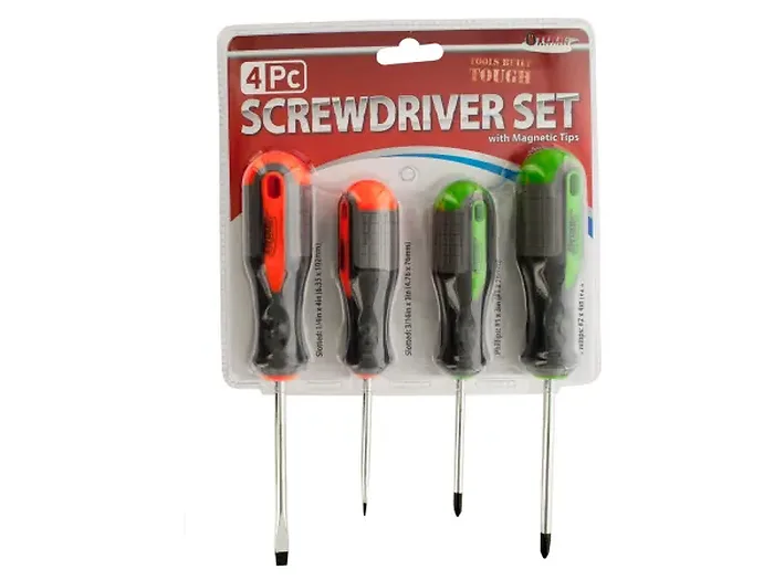 This 4-piece Magnetic Tip Screwdriver Set is perfect for all your household and workshop needs. Made with durable chrome vanadium shafts, these screwdrivers are designed for both comfort and efficiency. The set includes: