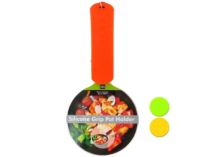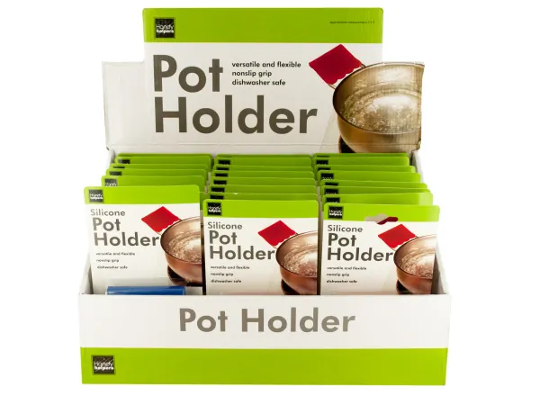 Available in assorted colors, it combines functionality with style. Each pot holder measures approximately 7" x 2" and is packaged for hanging display.
