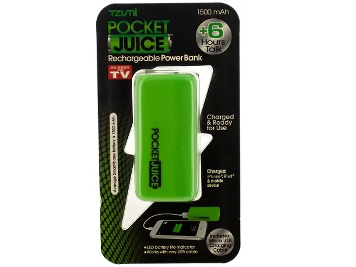 Green Pocket Juice Rechargeable Power Bank with USB Cable