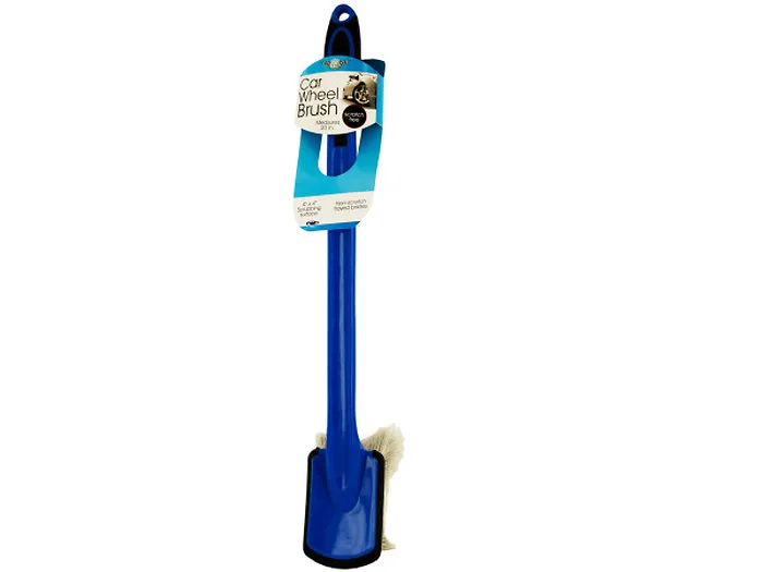 Clean wheels and tires confidently with this Scratch-Free Car Wheel Brush featuring a 4" x 4" scrubbing surface with non-scratch frayed bristles, a comfortable non-slip handle and a hang hole for easy storage. Measures approximately 20" long. Comes packaged with a wrap around.