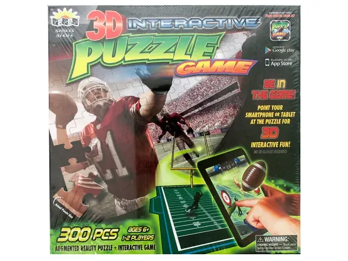 Once you complete the puzzle, the fun doesn’t stop! Download the free app available on Google Play or the App Store, and point your smartphone or tablet at the completed puzzle to engage in 3D interactive play. Compete with family and friends to score touchdowns or kick field goals and see who can achieve the highest score!