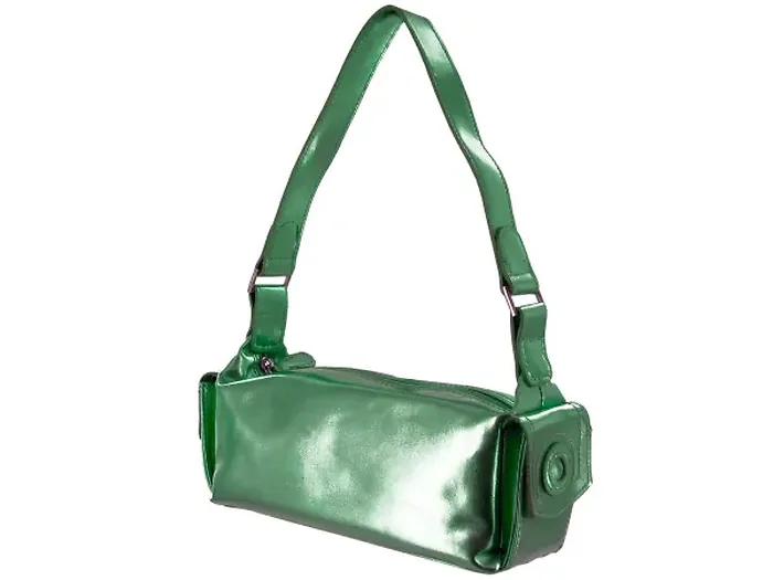 The Stylish Metallic Green Handbag with Multiple Pockets is perfect for both everyday use and special occasions. This chic bag features a stunning metallic finish that adds a touch of glamour to any outfit. It includes two exterior snap pockets adorned with stitched circle accents for added style, along with a secure inside zipper pocket and a convenient slip pocket. The reliable top zipper closure ensures your belongings are safe and organized. With dimensions of approximately 9.5" x 3.5" x 4" and a comfortable 7.5" drop strap, this handbag is designed for both functionality and fashion.