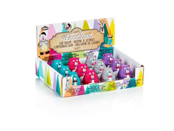 Keep your lips glossy and moisturized with our adorable Woodland Creatures Lip Balm Collection. Each lip balm comes in a charming plastic pot shaped like a forest animal, complete with a hinged opening for easy access. Available in a variety of styles featuring a fox and a squirrel, you can choose from vibrant colors such as pink, orange, and gray. Delight your senses with our delicious flavors, including vanilla crush, cotton candy, wild strawberry, and wild berry. Perfect for on-the-go hydration, each pot contains 0.05 ounces of nourishing lip balm, beautifully packaged in a hanging box.
