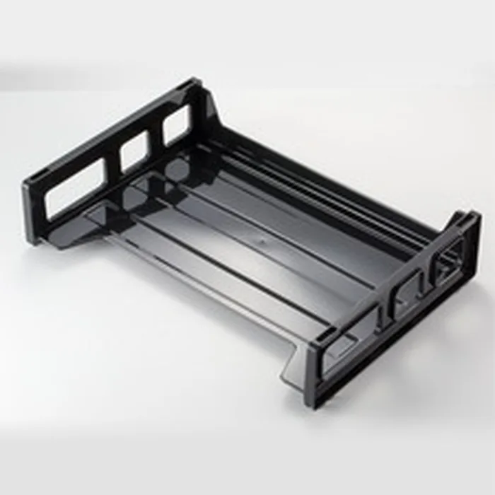 Side-loading letter tray provides convenient desktop organization. Stackable design lets you organize more items without taking up more space on your desk. Durable, injection-molded design features a ribbed bottom to prevent papers from sticking. Built-in handles allow easy transportation. Letter tray can be used with the Office Mate drawer tray 26032 (sold separately) to create a combination organizer unit.
