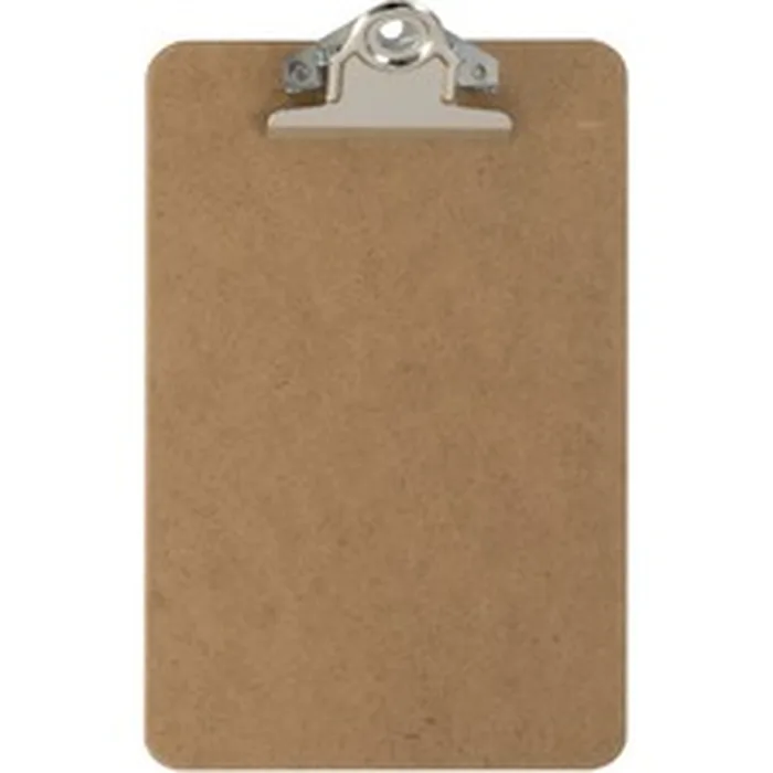 Hardboard clipboard features a 6" rust-resistant clamp that holds up to 1" of paper securely in place. Design includes a smooth top and bottom, beveled edges and a hanging hole. Clipboard is made from high-quality, brown hardboard and designed for maximum durability. Hardboard contains a high percentage of recycled or recovered wood material.
