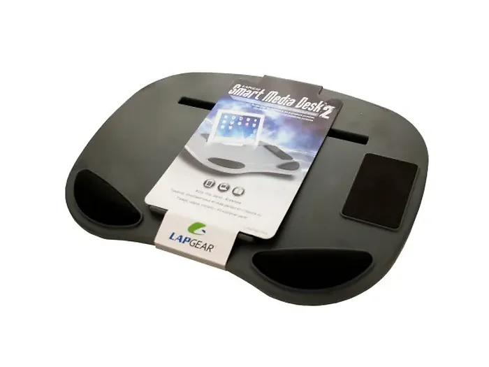Experience the ultimate convenience while working, gaming, or enjoying media with the Ergonomic Grey Media Lapdesk. This innovative lapdesk features a rounded plastic top with plush bean bag cushioning for comfort, ergonomic wrist pads for added support, and a non-slip surface to securely hold your phone. The built-in media slot is designed to accommodate tablets and eReaders at the perfect angle, making it ideal for browsing, viewing videos, or gaming sessions.