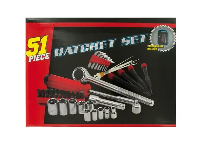 The Comprehensive 51-Piece Ratchet Tool Set is an essential addition to any toolbox. This versatile set includes high-quality metal tools designed to meet a wide range of needs.