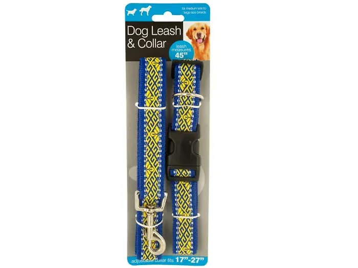 This set is designed with practicality in mind, featuring a sturdy metal collar connector on the leash and a secure plastic snap buckle on the collar. Available in assorted styles, this set comes packaged on a convenient tie card for easy display.