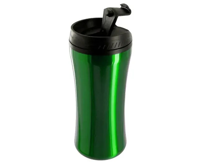 The Stylish Metallic Green Travel Coffee Tumbler is designed for both hot and cold beverages, making it the perfect companion for your busy lifestyle. Crafted from durable aluminum and plastic, this double-walled tumbler features a contemporary hourglass shape for a comfortable grip.