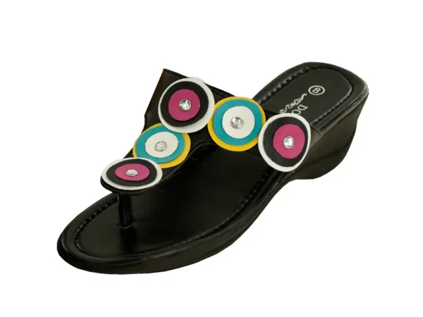Elevate your fashion game with these Stylish Black Wedge Sandals, featuring elegant gold details. Ideal for both dressing up for special occasions and for casual everyday wear, these sandals offer a trendy look combined with comfort.