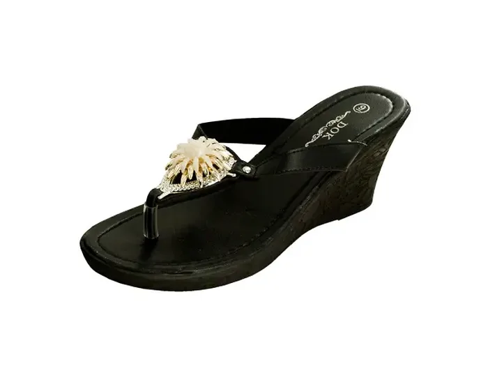 Elevate your style with our Elegant Black Wedge Sandals, beautifully adorned with gold floral accents. These sandals are perfect for both casual outings and dressy occasions, providing a stylish touch to your ensemble.