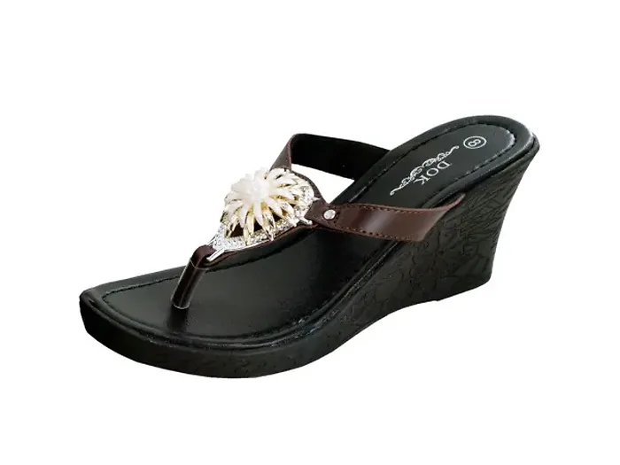 Step out in style with our Elegant Brown Wedge Sandals featuring beautiful gold flower accents. Perfect for both casual and dressy occasions, these sandals are designed to provide comfort and flair.