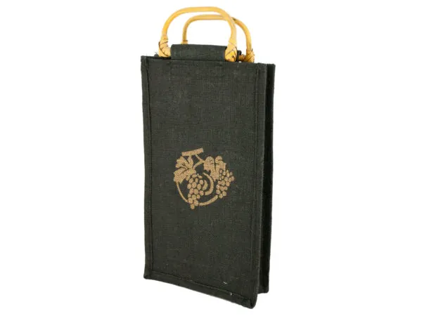 This Stylish Black Burlap Wine Tote with Bamboo Handles is the perfect companion for transporting your favorite bottles of wine or accessories. Its durable woven construction ensures longevity while the four outer slip pockets provide additional storage for wine tools or snacks. The round bamboo handles not only add a touch of elegance but also make carrying easy and comfortable, thanks to the 3.5-inch drop. Featuring an interior with a water-resistant coating, this tote protects your items from spills and moisture.