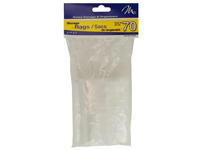 Organize and safeguard your small items efficiently with this comprehensive set of transparent locking storage bags. Featuring a total of 70 pieces, these bags are designed with secure locking tops to keep your items safe and accessible. Each bag measures approximately 5.25 inches by 3 inches, making them perfect for a variety of small items. The set is conveniently packaged in a poly bag with a header card for easy display and storage.