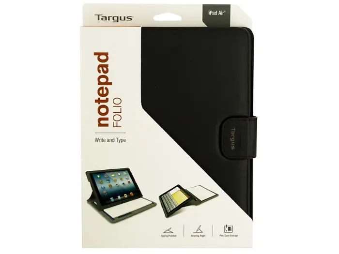 The Targus Black Notepad Folio for iPad Air is a stylish and functional accessory designed for professionals on the go. This all-in-one folio allows you to enjoy the convenience of using your tablet while keeping a traditional notepad and pen close at hand.
