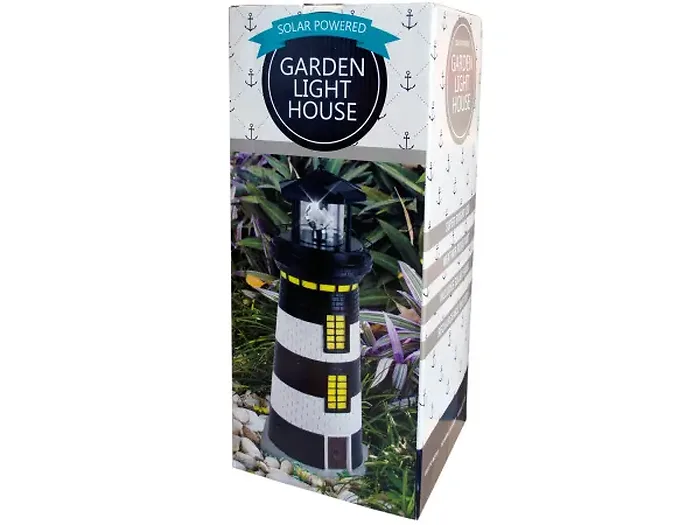 Enhance your garden or patio with the charming Nautical Solar LED Garden Lighthouse. This intricately designed, hand-painted resin lighthouse is complemented by a sturdy metal railing and showcases a super bright rotating LED light at the top. Perfect for your outdoor decor, it automatically lights up at dusk and is built to withstand the elements.