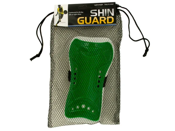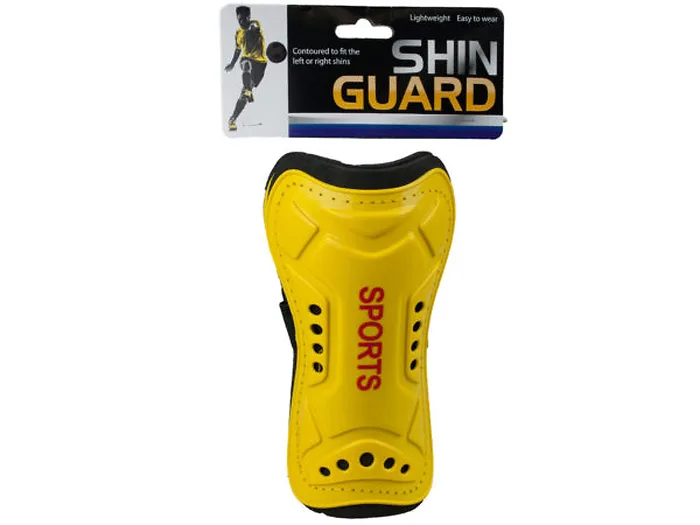 Guard yourself from injuries while playing soccer with this 2-piece Protective Contoured Shin Guards Set featuring tough yet lightweight plastic guards with foam backings for comfort and elastic straps with hook and loop closures for easy wear and removal. Guards are contoured to fit left or right shins. Comes in assorted colors. Comes packaged in a poly bag with a header card.