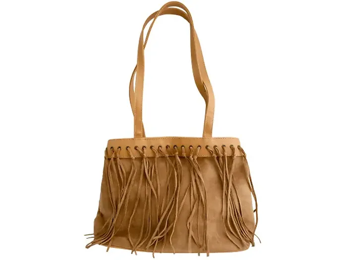 Tan Faux Suede Handbag with Tassels