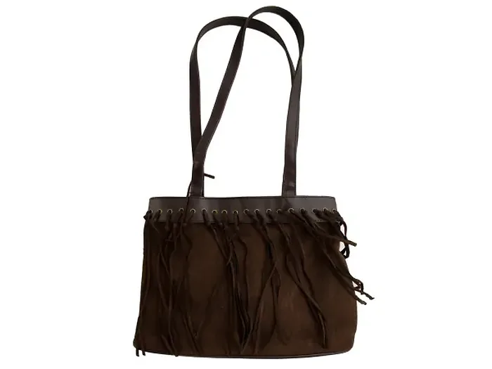 Elevate your fashion game with our Stylish Dark Brown Faux Suede Handbag. This handbag is crafted with high-quality imitation suede and leather, adorned with brass eyelets and elegant long tassels that add a chic flair to your outfit.