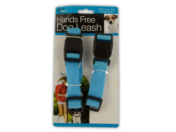 Go running or strolling with your pet with this Hands Free Dog Walking & Running Waist Belt featuring a hands free leash system that is designed for active people and active dogs. It is perfect for jogging, hiking and even puppy training. The leash is secured around your waist, leaving your hands completely free for whatever you need. Easy-to-use, strong nylon, fully adjustable belt and leash is durable yet comfortable. Leash hook is rotatable and leash connects to belt with a buckle that is easy to wear and remove. There is a quick release mechanism on belt so leash can be released immediately in case of emergency. Leash can be converted to a traditional hand-held leash. Traction leash is approximately 30"-55" long; leash connect is 6.2" long and waist belt fits waists 23"-39". One size fits all. Comes in assorted colors. Comes packaged to a hanging panel.