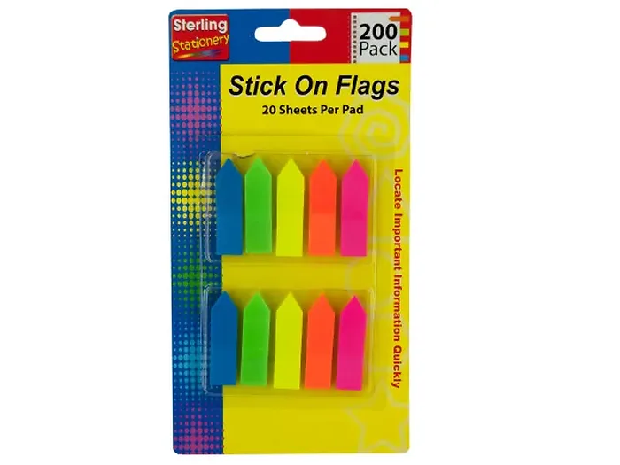 Stay organized and locate important information quickly with our Neon Arrow Sticky Flags Set. This collection includes 200 neon arrow flags that are perfect for marking critical notes, reminders, and to-do lists. Each flag measures approximately 1.75" x 0.5", making them an ideal size for any planner or notebook.