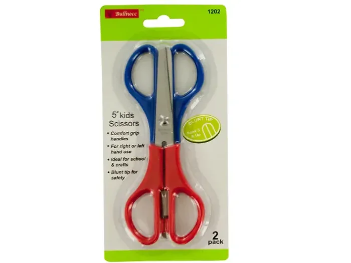 Introducing our Safety Scissors Set for Kids, designed with little hands in mind. These 5-inch scissors feature comfort grip plastic handles and blunt tip blades to ensure safety while allowing for precision cutting. This set includes two pairs of scissors suitable for both right and left-handed users, making them perfect for all children's crafting needs.