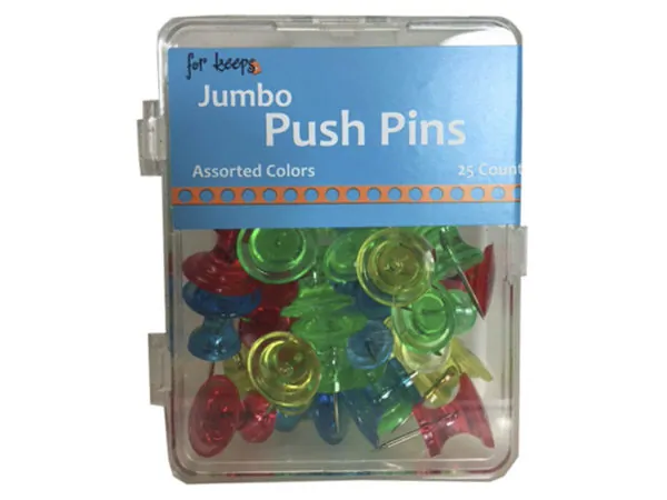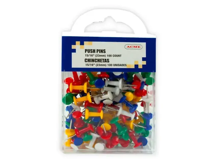 Organize your space with these vibrant 1-inch Color Push Pins, perfect for bulletin boards, corkboards, or any surface that needs a touch of color. Each set includes 100 push pins stored conveniently in a clear plastic hanging box that measures 2.15" x 3.50".