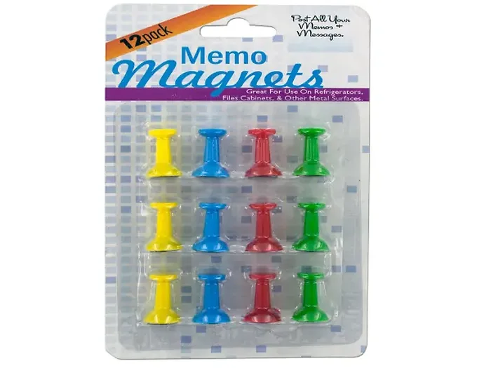 Brighten up your magnetic surfaces with these colorful push pin magnets. Instead of traditional pins, these magnets provide a unique way to hold photos, papers, and notes securely. Each pack includes 12 magnets in vibrant colors like yellow, blue, red, and green, perfect for any office or home setting.