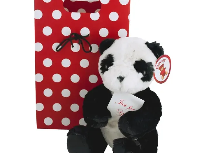 Gift Pouch Plush Panda with Polka Dot Gift Bag