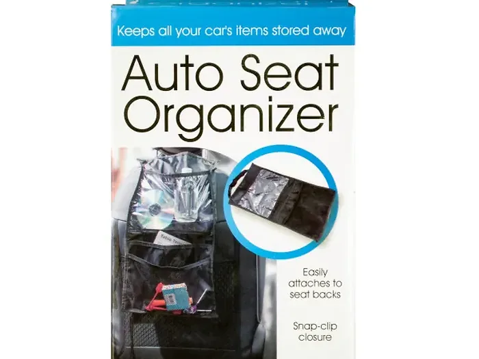 Keep your vehicle tidy and organized with the Deluxe Auto Seat Organizer. This product features a durable combination of nylon and plastic, designed to securely attach to the back of your car seat. With a variety of pockets, it provides convenient storage for all your essential items, ensuring easy access and a clutter-free ride.