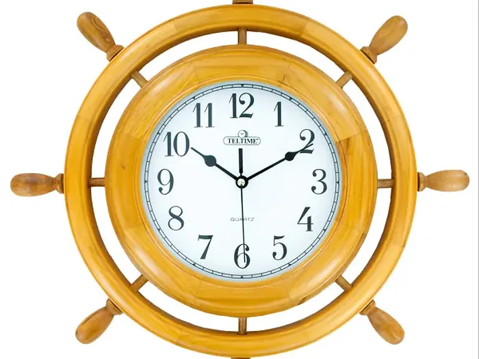 Enhance your nautical decor with the Nautical Wood Ship Wheel Wall Clock. This stunning wall clock features a classic black and white clock face encircled by a beautifully crafted wooden ship wheel frame. With its quartz accuracy and smooth second hand movement, it's not only a functional timepiece but also a charming decorative element for any room.