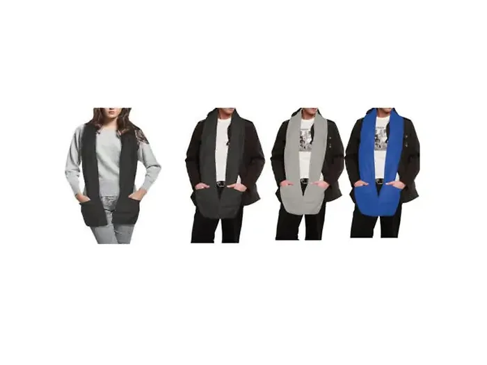 Stay warm and cozy in style with our Cozy Blue Thermal Scarf, designed for both indoor and outdoor use. This fashionable scarf is made from soft, comfortable fleece and features large pockets, perfect for storing remote controls, cameras, cell phones, and more.