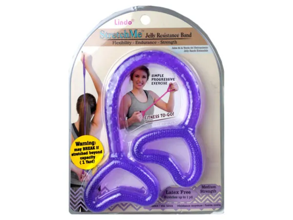 Includes 3 bright colors: pink (light tension), green (medium tension) and blue (heavy tension)Great for working out at home or while travelingWide, durable stretchy plastic bands with three tension levelsBands easily fold up into compact, portable sizeMade from plasticGreen, blue and pink47 in. L x 4 in. WWeight: 0.58 lbs.