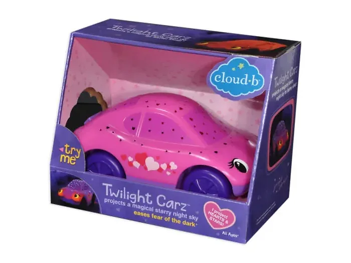 Introduce a touch of magic to bedtime with the Twilight Carz Magical Hearts Night Sky Projector. This adorable little car transforms any room into a enchanting starry night sky, making bedtime a delightful experience. Its individual headlights, taillights, and heart projections can be activated separately, allowing children to choose their favorite light display. Designed for play and comfort, the car's rolling wheels make it perfect for daytime fun, and it features an auto shut-off function after 45 minutes to conserve battery life.