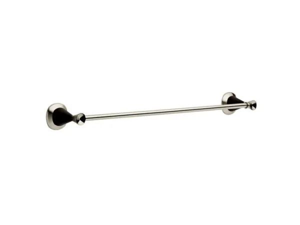 Enhance your bathroom's style with the Delta Providence Satin Nickel Towel Bar, showcasing a sophisticated and contoured design. The elegant brushed nickel finish adds a touch of luxury to your space, making it a perfect addition for both modern and traditional bathrooms.