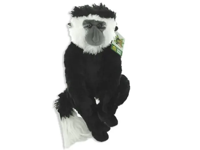 Packaged with a charming hang tag, this plush colobus monkey makes a delightful present for children and adults alike.