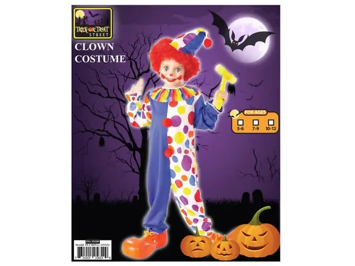 This vibrant kids clown costume set includes a colorful jumpsuit and a playful clown hat. Perfect for parties, Halloween, or themed events, this outfit is designed to delight and entertain. The costume is made from comfortable materials that allow for easy movement, making it ideal for kids who want to have fun while dressed as a cheerful clown.