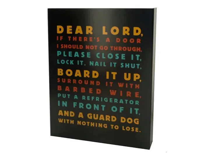 "Dear Lord, if there's a door I should not go through, please close it, lock it, nail it shut, board it up, surround it with barbed wire, put a refrigerator in front of it, and a guard dog with nothing to lose."