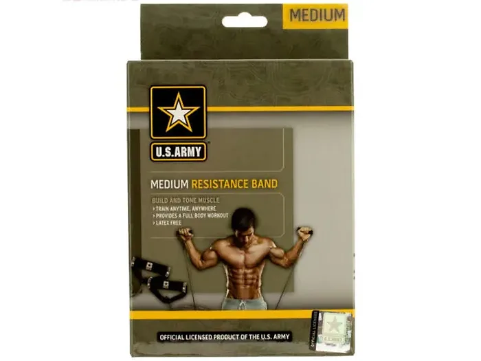 Enhance your fitness routine anywhere with the U.S. Army Medium Resistance Workout Band. This officially licensed band is crafted from strong, durable, latex-free materials and features foam handles for a comfortable, custom grip.