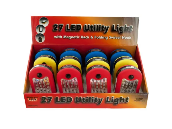 The Versatile 27 LED Utility Light is ideal for a variety of activities, including working, camping, and handling emergencies. This durable light features a soft touch plastic design and offers dual light sources from both the side and top. Equipped with a strong magnetic back and a folding swivel hook, it provides hands-free lighting wherever you need it.