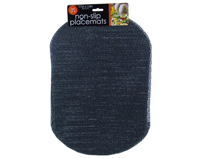Perfect to use on your dinner table. These non-slip placemats not only will it keep from your dish from sliding but it will also help protect your table surface from scratches. The placemats are 17/1" x 11.8" in size comes in a set of 4 in a black mesh design. Comes packaged with a hanging header.Available in a pack of 12Product Type: Bulk Buys