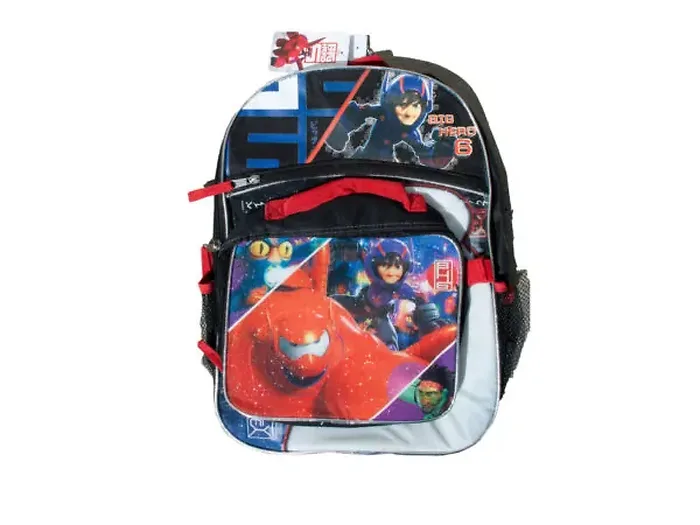 This stylish and practical backpack set features your favorite superheroes, including Avengers, Big Hero 6, Spider-Man, and Justice League. Perfect for school or travel, it is made from durable woven polyester and comes with vibrant graphics and stylish silver piping. The backpack is designed with your comfort in mind, featuring a padded back, adjustable padded straps, an outer zipper pocket, and side mesh pockets. It also includes a convenient hanging loop for easy storage.