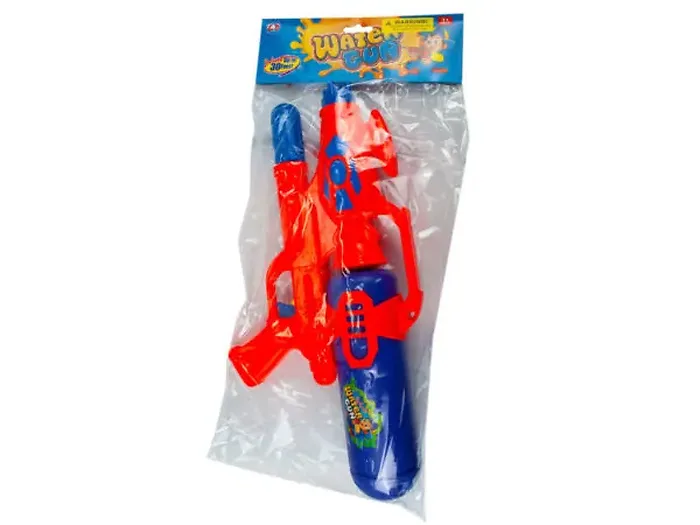Simply fill the gun with water, pump to build pressure, and pull the trigger to unleash a stream. Measuring 16.25" x 9", it's ideal for children ages three years and above. Each unit comes packaged in a polybag with a colorful header card, ready to make a splash!