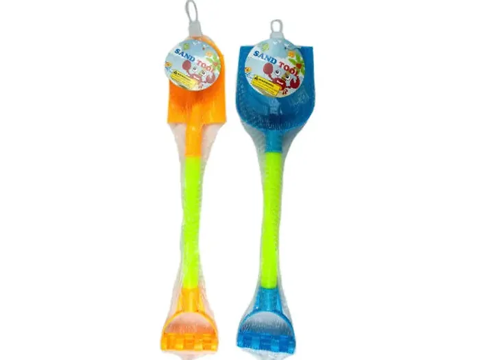 The shovel helps children dig for hidden treasures, uncovering shells, stones, and other surprises in the sand. Each tool comes in vibrant assorted styles and colors to keep kids engaged and excited. Measuring approximately 16" - 17" in length, this tool is crafted for small hands and is perfect for children aged three years and above.